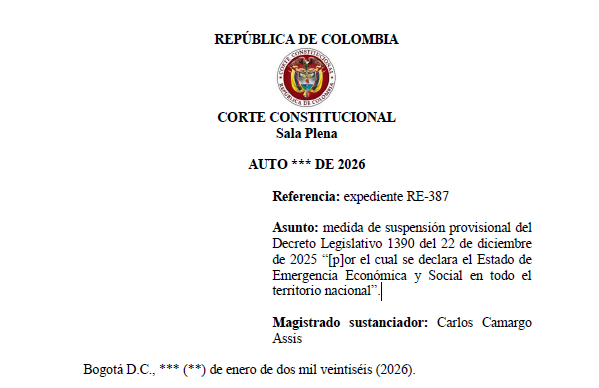 Auto 082 de 2026 – Suspensión Provisional del Estado de Emergencia Económica Auto mediante el cual la Corte Constitucional decidió suspender, provisionalmente,